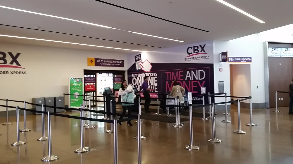 You enter the CBX building, buy a ticket, and walk an inside pedestrian bridge over the border directly into to the check-in area of the Tijuana airport. From there, you take what has just become a cheaper Mexican domestic flight rather than the international flight everyone else takes. I've included a video of my Uber ride so you can see the route and U.S.-side entrance.